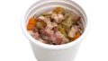コンソメベースのスープは味の方向性がわかりやすく、野菜スープの中でも食べ慣れた印象があります。鶏肉が入っているため、野菜だけのスープよりも満足感を得やすい点もポイントです。