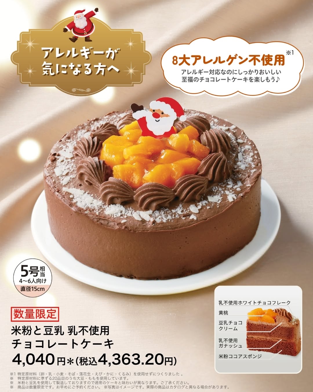 - 8大アレルゲン不使用のチョコレートケーキ